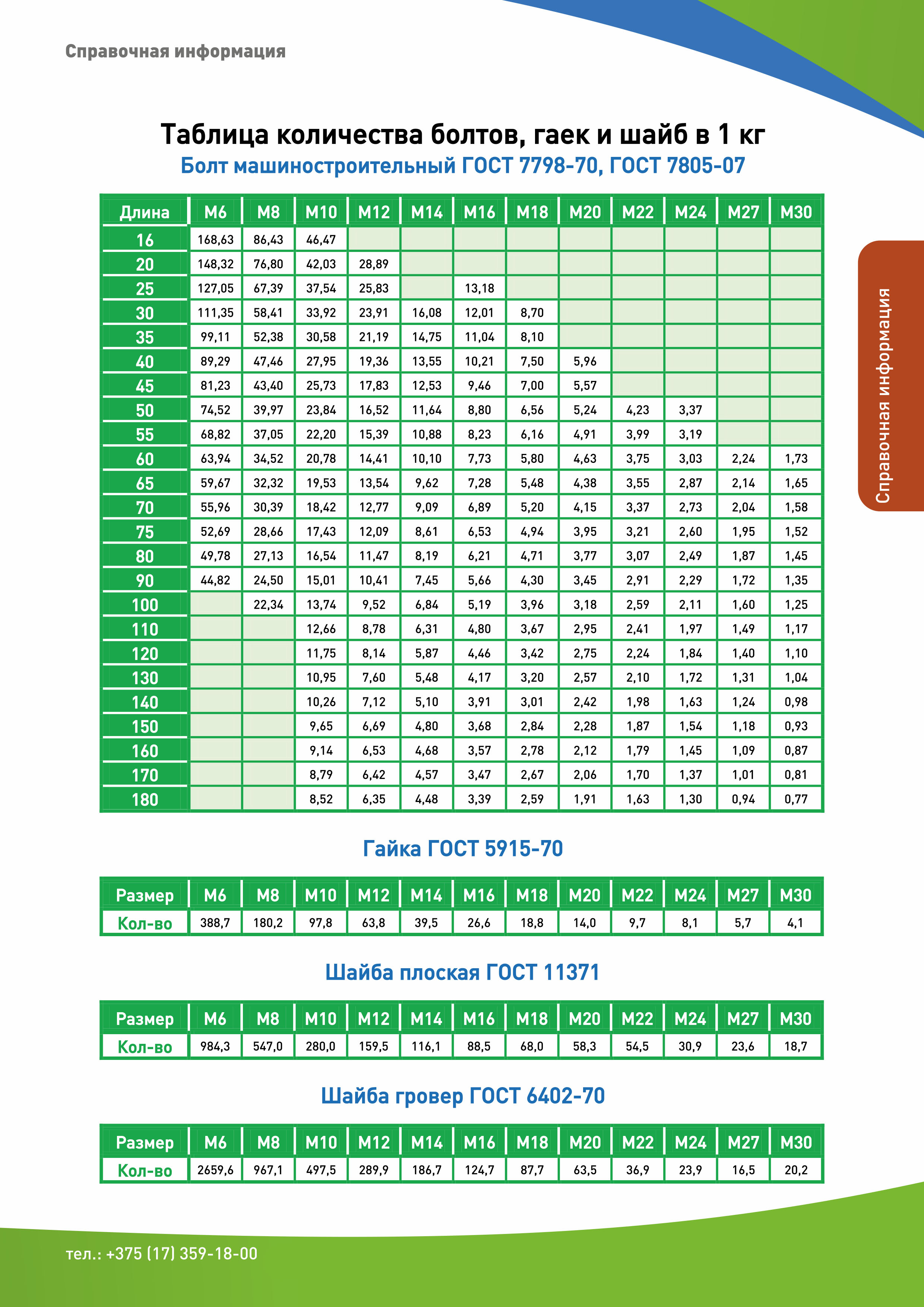 - Таблица количества болтов, гаек и шайб в 1 кг.