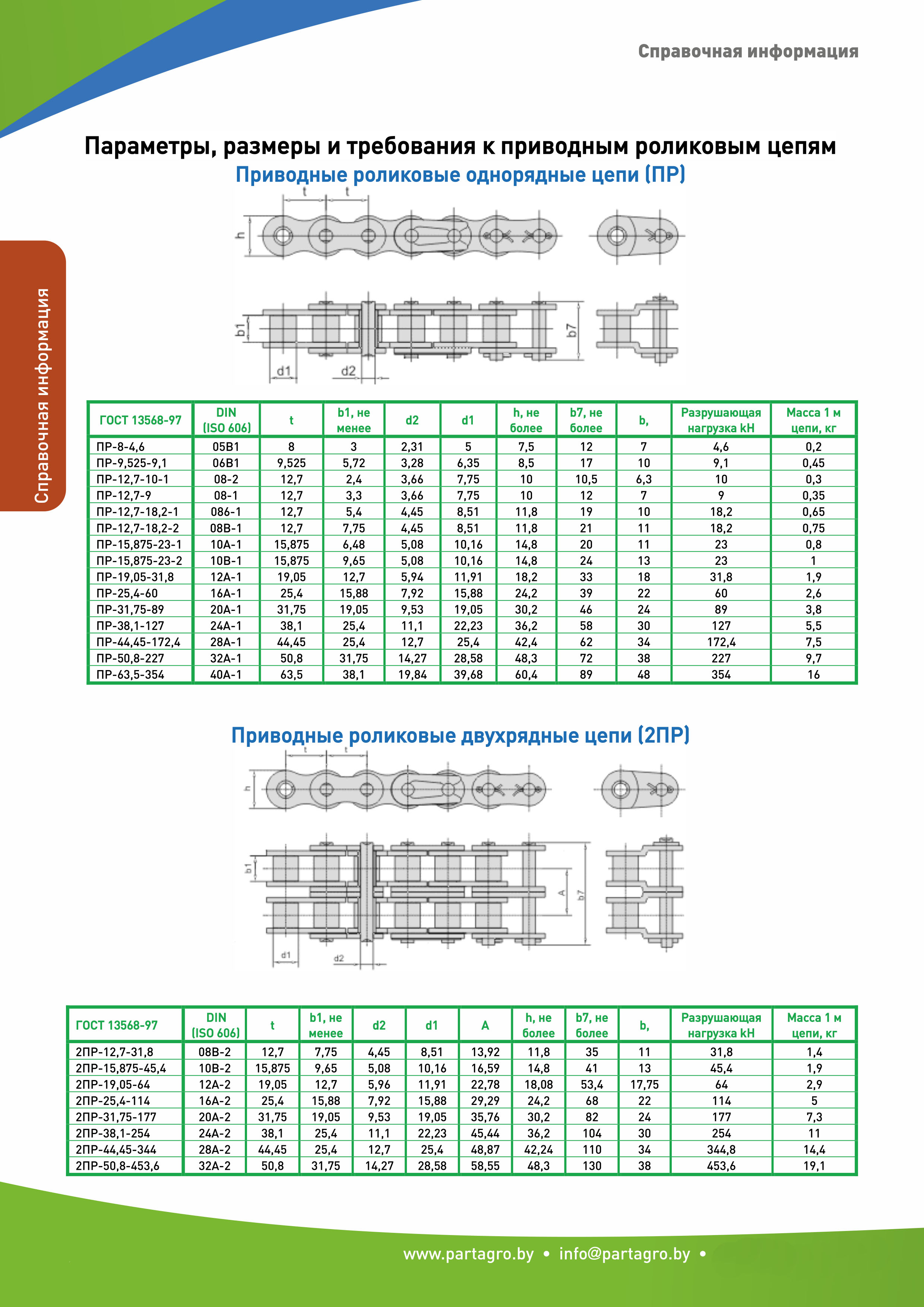 - Параметры, размеры и требования к приводным роликовым цепям.
