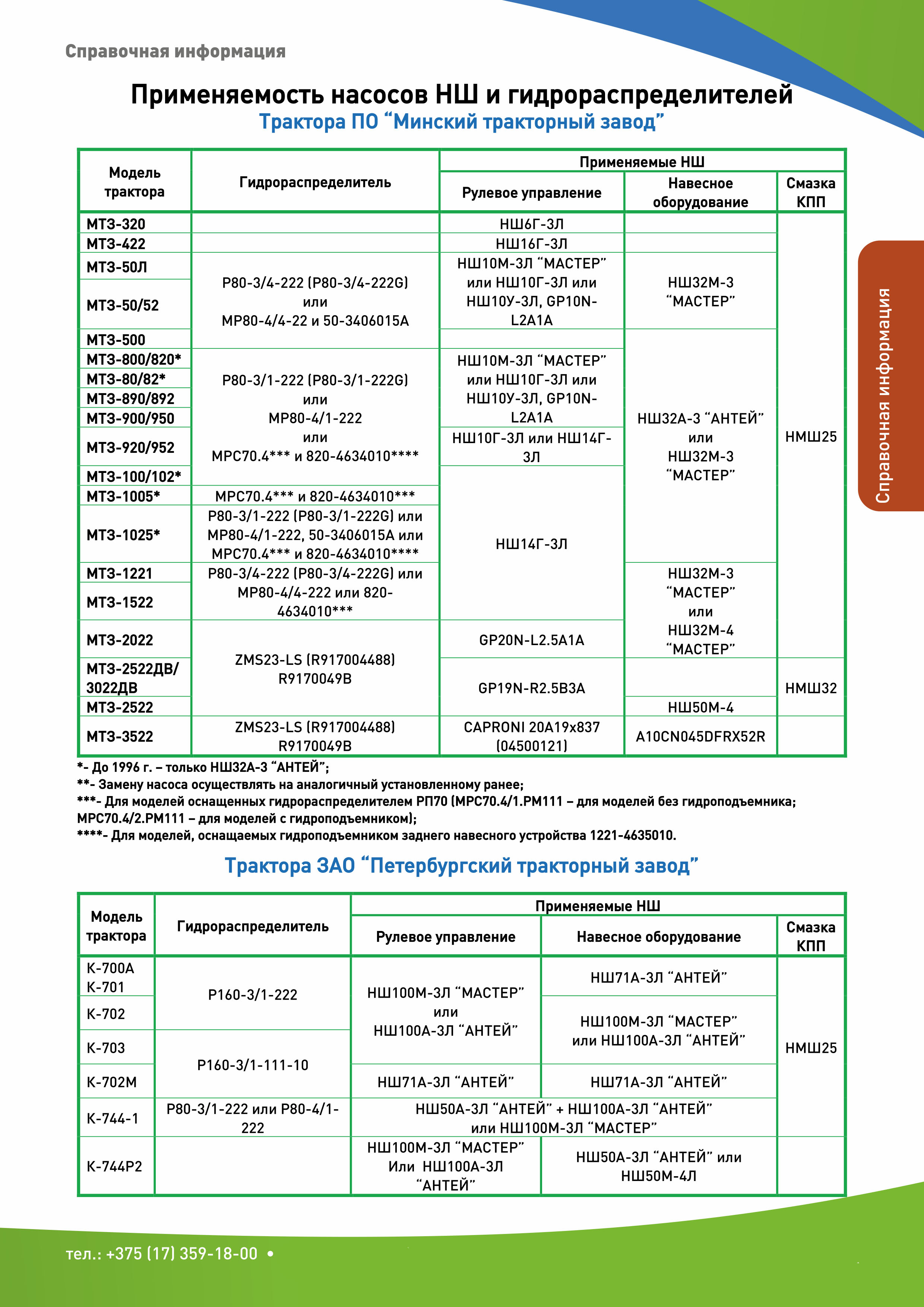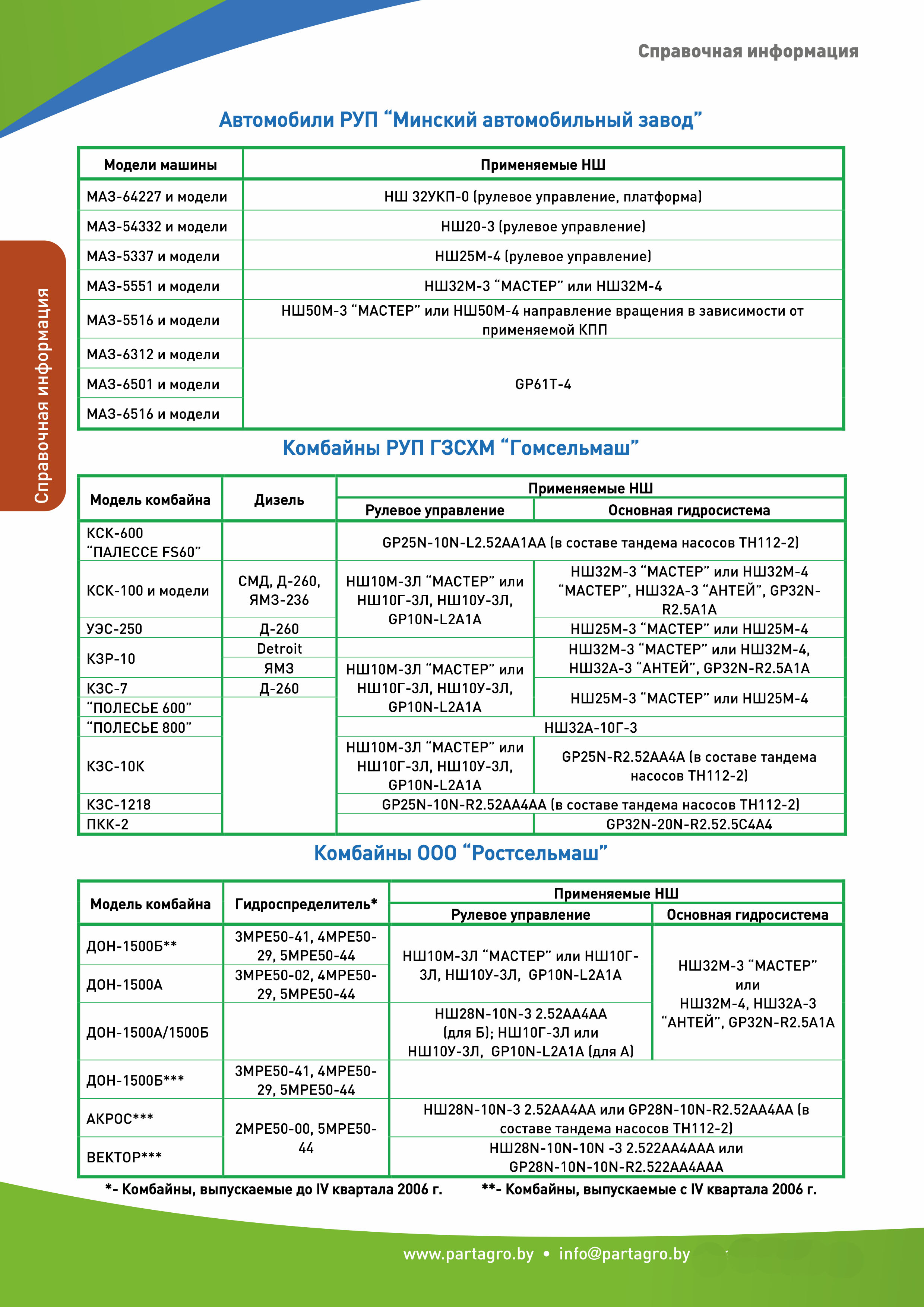 - Применяемость насосов НШ и гидрораспределителей: часть 1, часть 2.