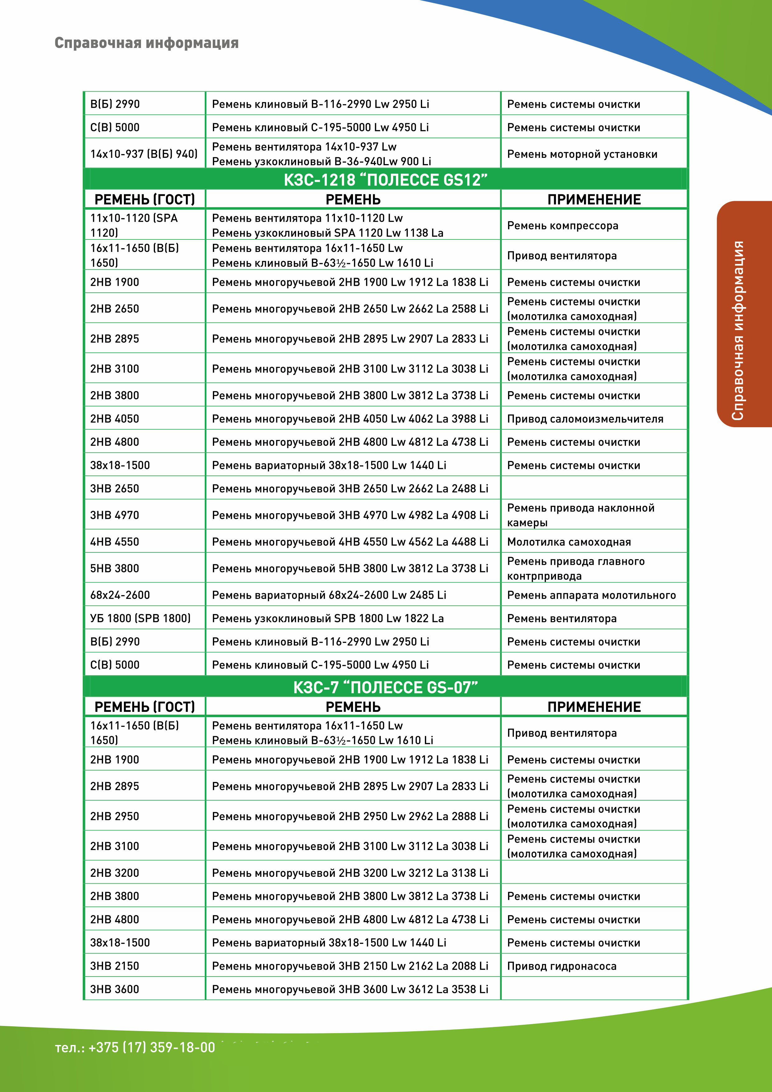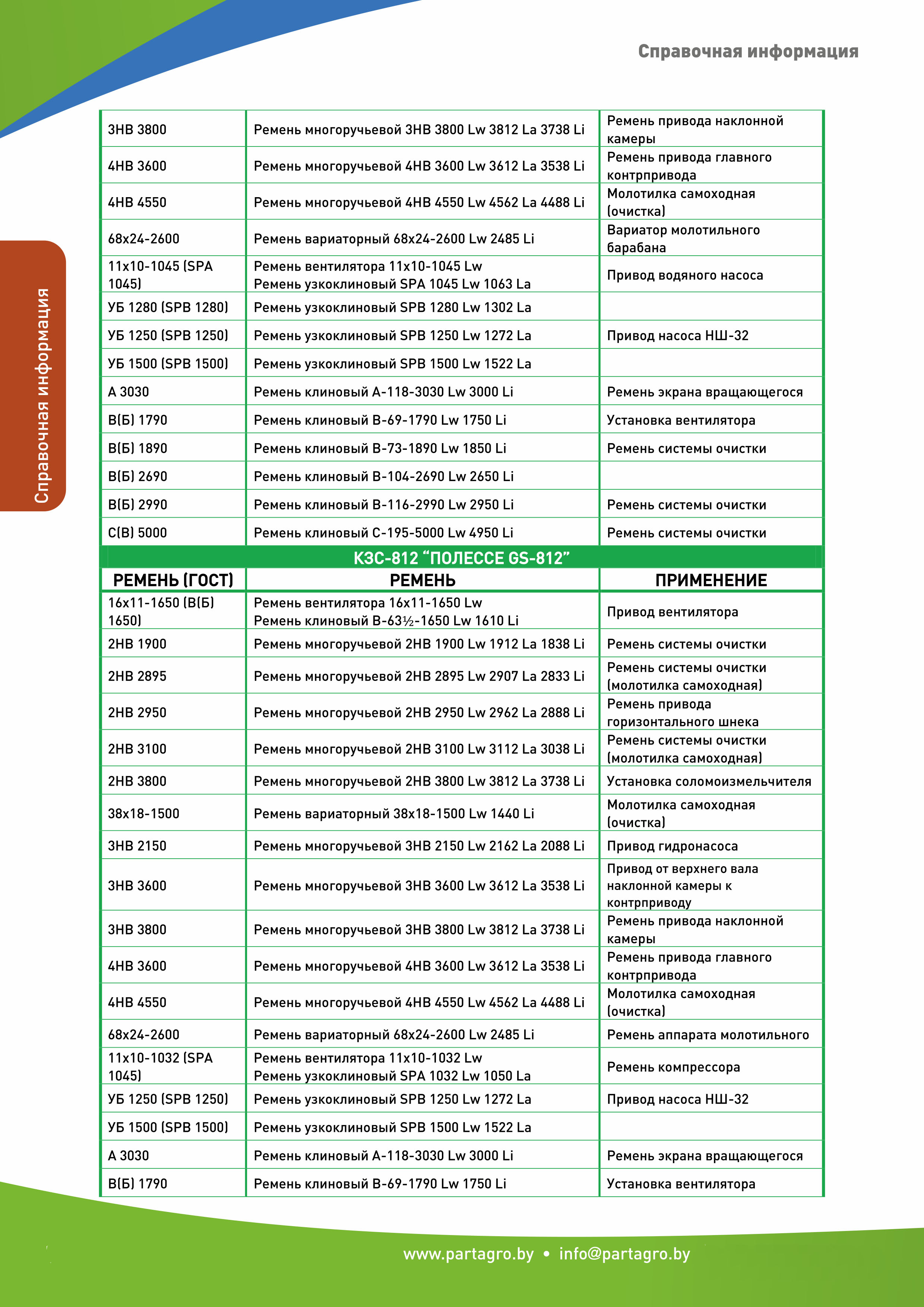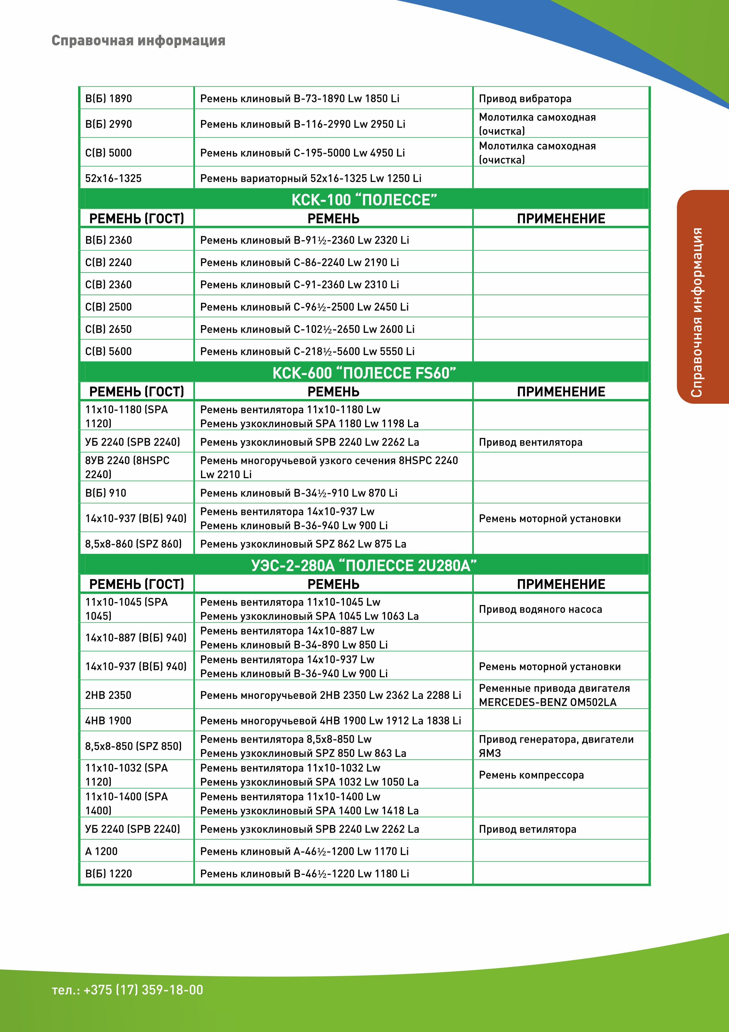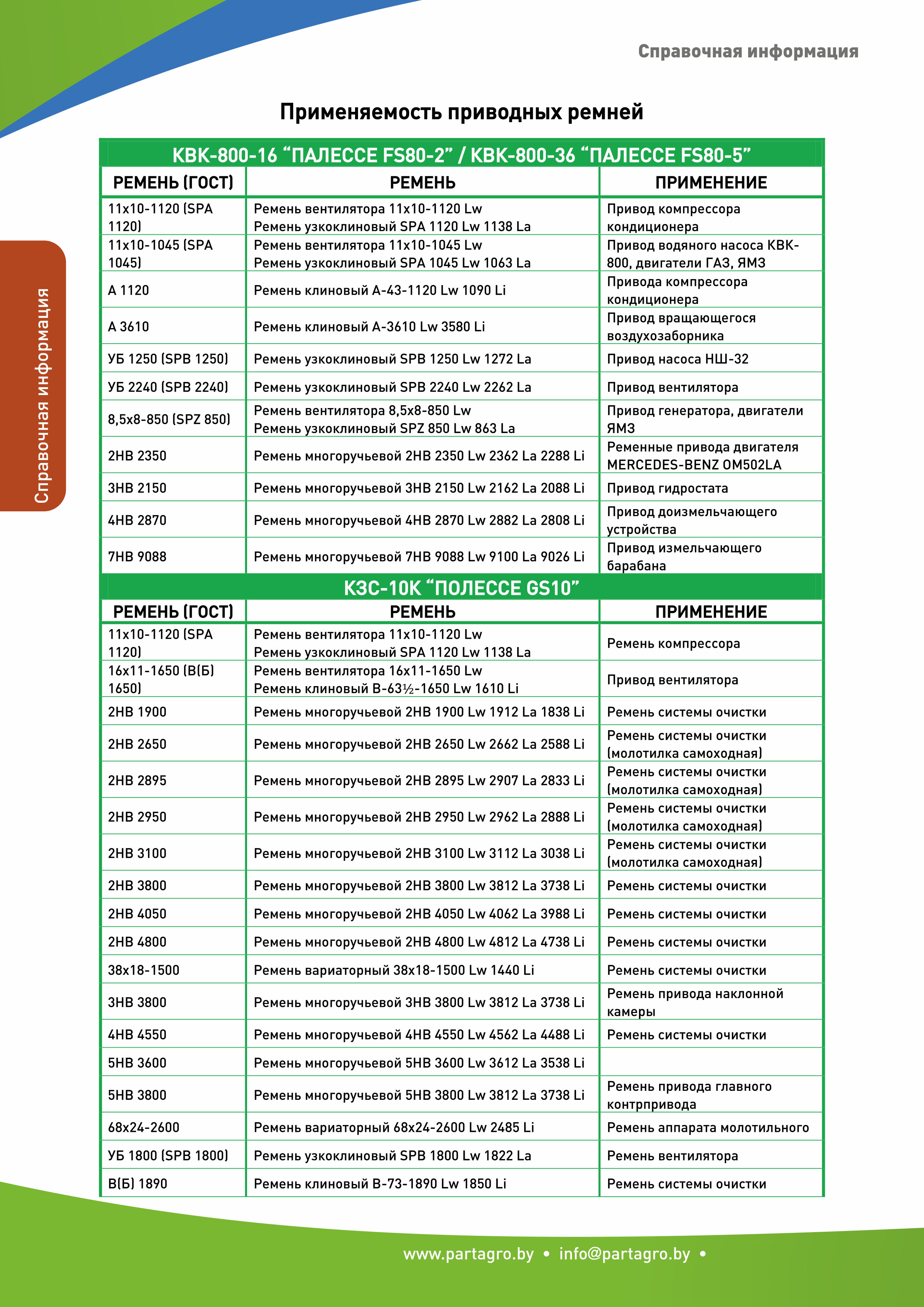 - Применяемость приводных ремней: часть 1, часть 2, часть 3, часть 4.
